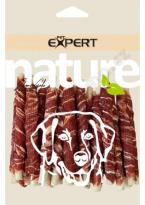 Doplňkové krmivo pro psy z lisované přírodní kůže obohacené o sušené kachní maso